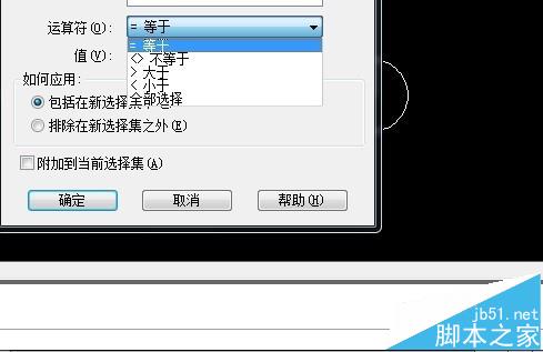 6、選擇運算符,有等于、不等于、大于、小于、全選五種。