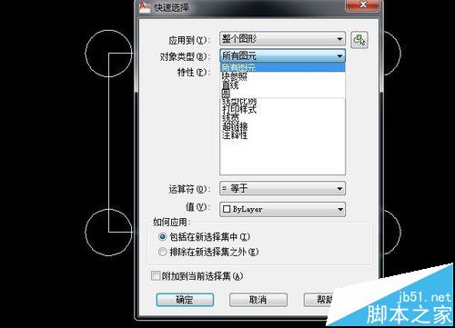 3、選擇對應的對象類型,這里現在“所有圖元”。