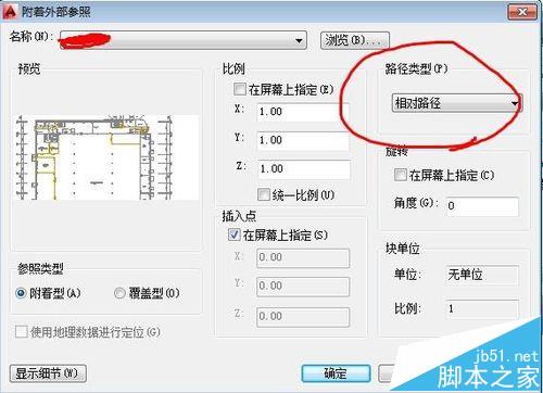 2、要保證插入外部參照的時候,路徑類型是相對路徑。所有專業都用此方法插入外部參照作為底圖。