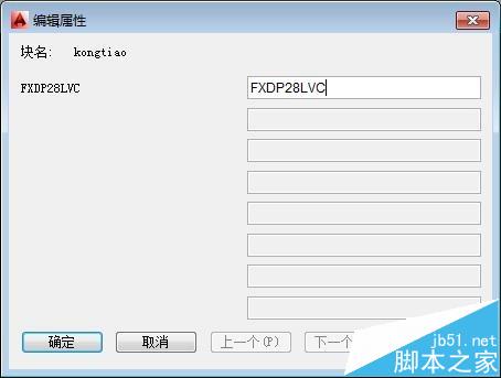 7、如果要插入kongtiao的塊時,就會顯示對話框讓輸入新的型號。