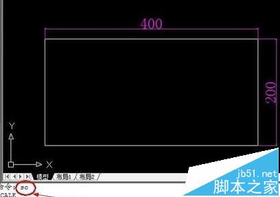 2、畫出將要修改比例的圖形。這里以長(zhǎng)400mm,寬200mm的矩形為例