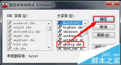 選擇 gbcbig.shx 之后,點擊 確定,用國標字體,暫時代替其他字體: