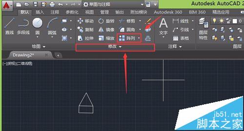 3、在上面的菜單區找到修改里面的陣列菜單,如圖所示:
