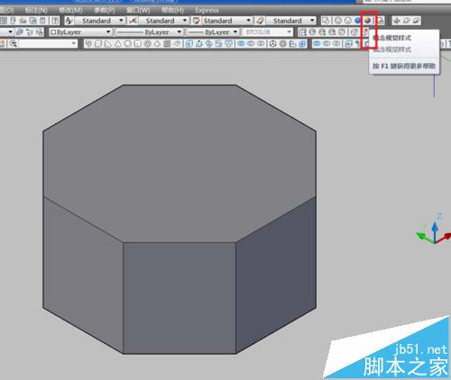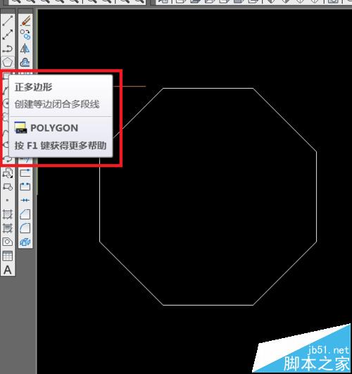 7、本例舉例說明畫一個8邊形的柱體。使用正多邊形的命令任意畫一個尺寸的8邊形。這里不詳細說明。截圖示意。紅框處著重看。
