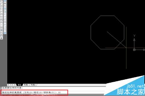 8、指定拉伸高度。(這里輸入90,尺寸單位mm),回車確定。截圖紅框處著重看。
