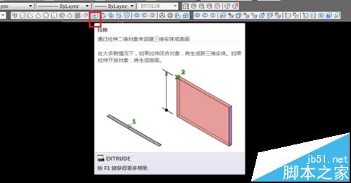 6、現在我們使用拉伸命令來進行一個三維制圖的操作。命令圖標如下圖。