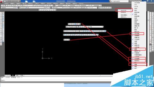 5、接下來我們在工具條空白的地方右擊,一個一個的點擊,調出畫三維圖形所需要用到的工具條,它們的圖標和文字的對應關系如下圖所示。鼠標點住它們并拖到工具欄適當的位置(只要自己知道在哪里就行)。