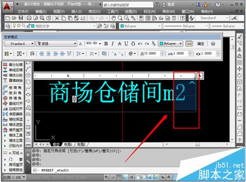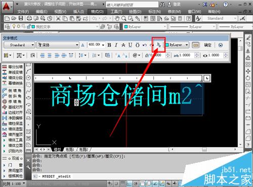 1、這個方式需要在多行文字編輯中才能實現,因此,輸入文字時候使用多行文字,繪圖——文字——多行文字,或者直接在命令欄輸入“mt”,點擊“回車鍵”進入編輯。這里以輸入“平方米”為例,其他的,n次方都是一樣的方式。輸入m^2。