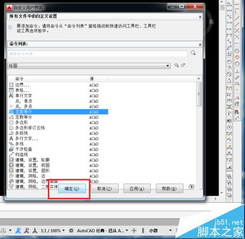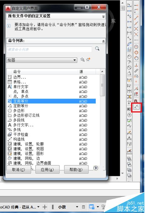 4、以添加定數等分快捷圖標為例,點住定數等分的圖標所在行,