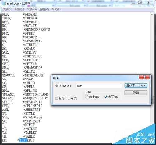 2、搜索“TEXTEDIT”,將這一行改成 ED, *TEXTEDIT,ED就是我們所要使用的快捷鍵。同理,將其他使用到ED快捷的“行”刪除。記得點保存。然后關閉窗口。不清楚的看下圖。