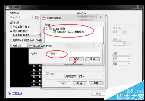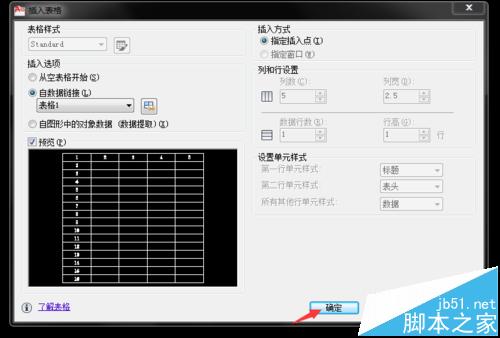 2、打開CAD,在命令欄鍵入table,彈出【插入表格】對(duì)話框 鉤選【自數(shù)據(jù)鏈接】,并點(diǎn)擊右側(cè)圖標(biāo)