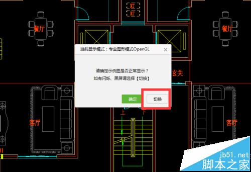 2、安裝完成后打開CAD,如果出現忽明忽暗就點擊切換