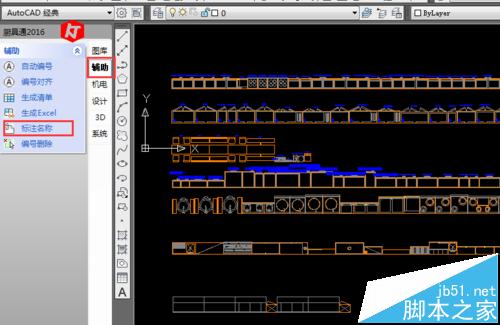 2、為了方便辨認,將所有圖塊的名稱調出。顯示圖塊名稱操作如下:廚具通2016-輔助-標注名稱-選中圖塊-回車確認。