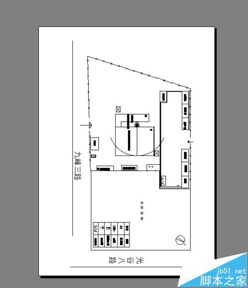 3、發現圖紙在中間橫向布置。這是它自己默認的打印方式