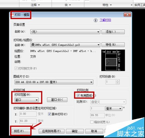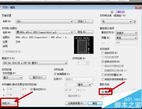 8、旋轉好后,再次選擇打印,打印預覽時,直接就可以看到已經布滿圖紙了,A4紙是豎向的,但是也布滿圖紙了