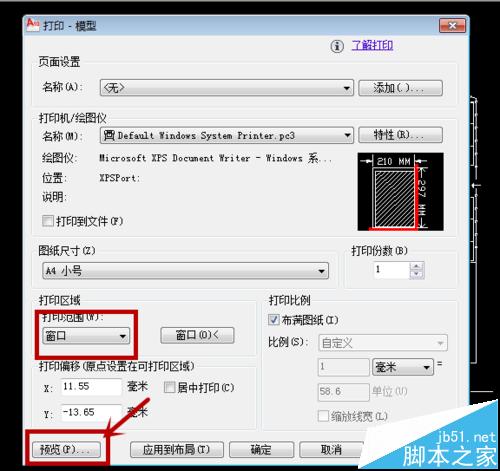 1、我們把做好的圖紙打開,打印的時候選擇“窗口”