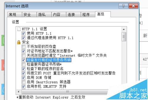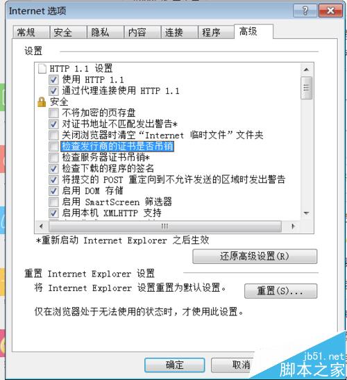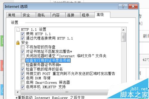 3、接著單擊最右邊的高級選項,找到檢查發(fā)行商的證書是否吊銷。