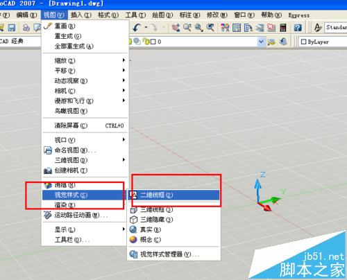2、然后我們點(diǎn)擊工具欄里面的“視圖”選項(xiàng),然后按照我的圖片提示進(jìn)行下一步操作。這里我們選擇“二維樣式”,然后選擇“二維線框”。