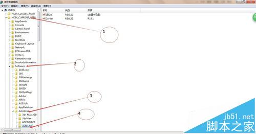 3、再找到“HKEY_CURRENT_USER”打開找到文件夾“Soft ware”再打開找到文件夾“Autodesk”再打開找到“AutoCAD”然后刪除這個文件夾。