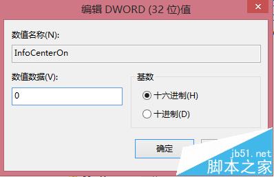 3、找到并雙擊右側 InfoCenterOn 修改數值 1 為 0 , 確定完成。