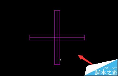 3、將兩條線分表向兩段平移,平移距離為5,用多線段工具,將他們連接起來(lái),形成閉合,得到十字架。