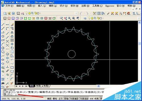 4)再在命令行中選擇合并:輸入“J”,回車。