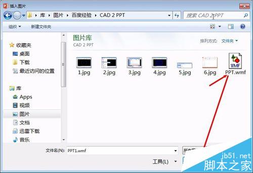 5)在插入圖片對話框中找到剛才用AutoCAD導(dǎo)出的圖元文件(.wmf)。