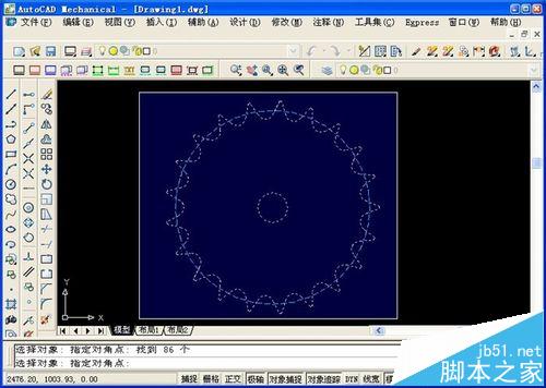 2)回到繪圖窗口,用鼠標(biāo)全部選擇所畫圖形。