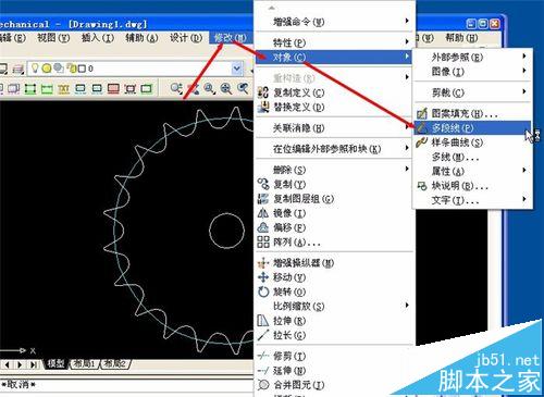 1)選擇“修改(M)”菜單,選擇“對象(C)”,選擇“多段線(P)”。