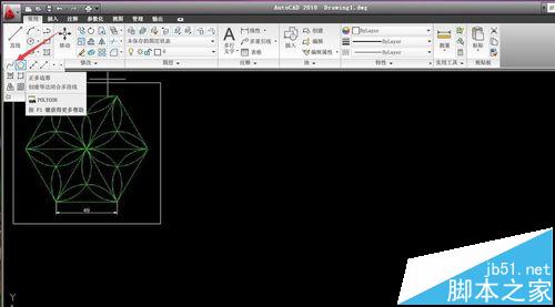 2、首先我們可以畫一個(gè)多邊形,按照提示依次操作,輸入邊書,指定點(diǎn),半徑等