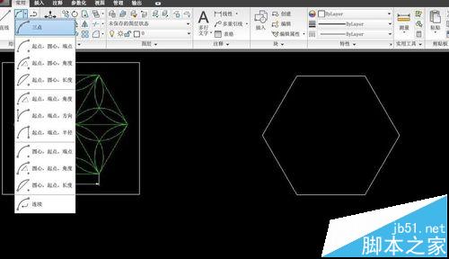 3、然后畫是圓弧,選擇喜歡的方式,常用的是三點(diǎn)