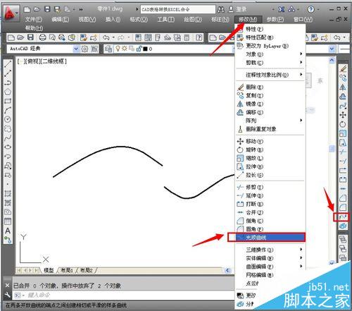 2、選擇“修改”,“光順曲線”,或者直接單擊工具條上的按鈕。