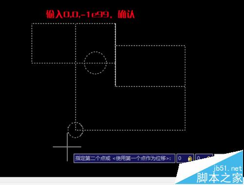 2、再次使用移動工具,選擇物體——確認——輸入0,0,0(從原點出發)——確認——再輸入0,0,-1e99(向下移動到正無窮)——確認