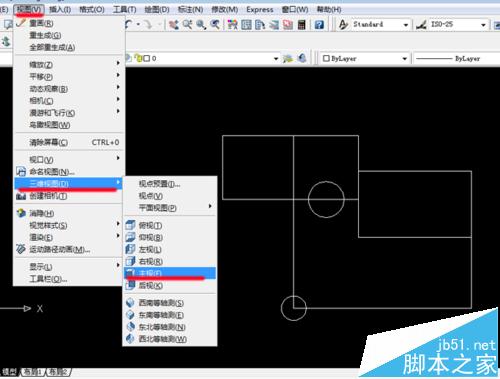 1、打開CAD,本例中平面圖形在頂視圖看沒什么問題,但進入到立面中就發現圖形不共面。