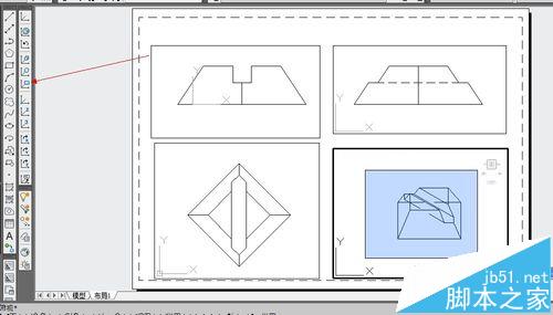 選擇對象:指定對角點(diǎn)將四個視口都選中