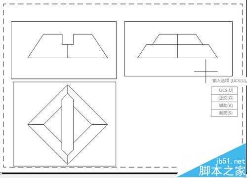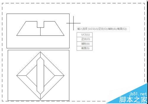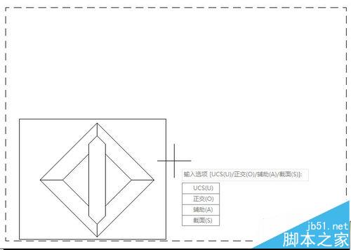 在輸入選項(xiàng)【UCS(U)/正交(O)/輔助(A)/截面(S)】:用鼠標(biāo)選擇“UCS(U)”或者鍵入“U”后按【Enter】鍵。