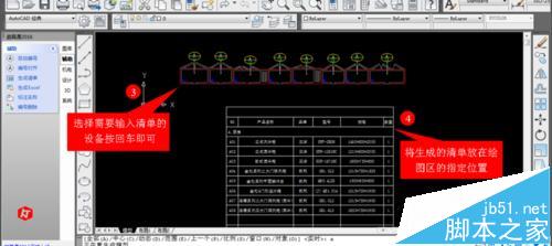 第三,選擇需要生成清單并已編號的設備,按回車。
