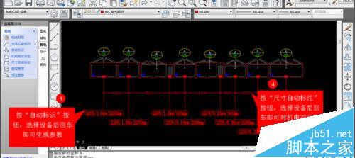 第三,按左側菜單欄“機電-尺寸自動標注”按鈕,選擇需要標注的設備按回車,即可標注尺寸。