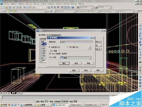 30、點新建按鈕,輸入視圖名稱[相機名]如;客廳,確定,即可保存剛做的相機文件;如需再次調入相機文件,輸入命令v后,點取相機列表中的客廳文件,再點置為當前即可調出相機文件。