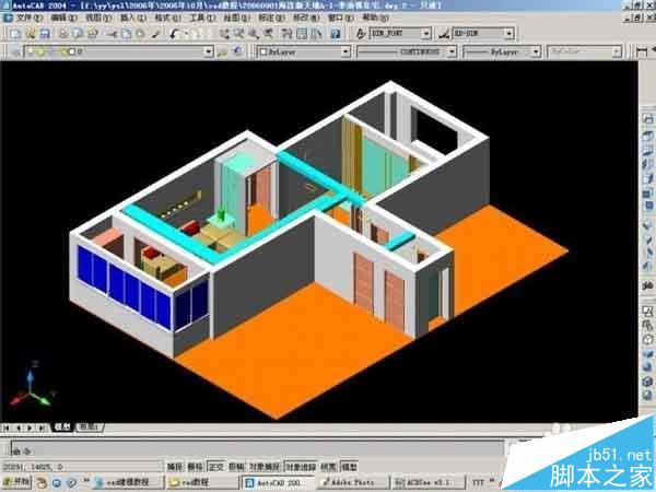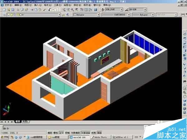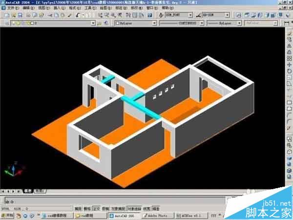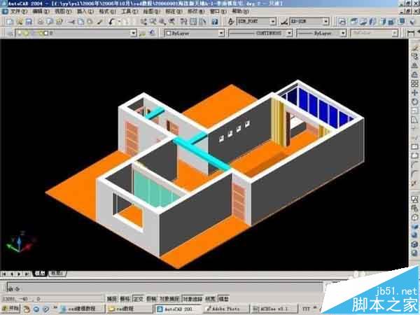9、把1-吊頂圖層隱藏掉,rr渲染命令后得到墻體、地面、及門窗的簡單表圖。