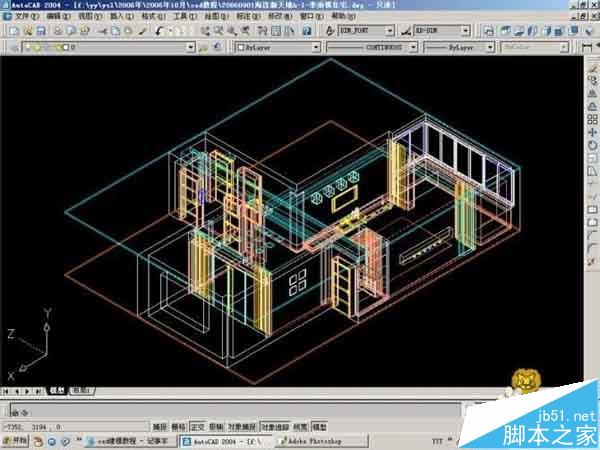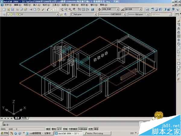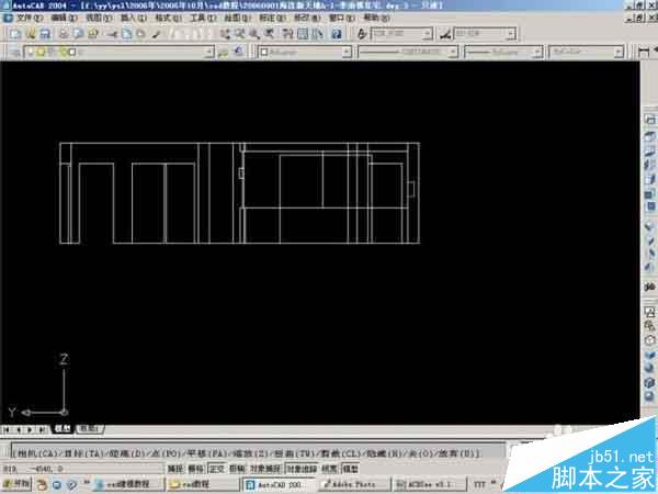 8、再用ext和su命令依次建好門窗及門窗套和窗簾[模放在1-門窗圖層]。