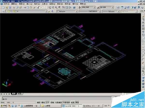 2、圖層做好后直接插入cad平面圖,把它放在1-2d圖層,然后把該圖層凍結(作為建模的參考圖層)。