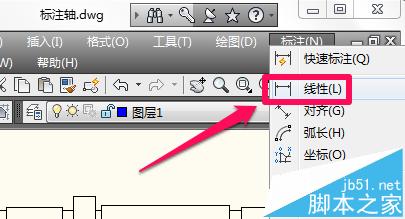 2、在cad菜單欄中選擇標注-快速標注,或者直接使用快速標注快捷鍵DLI。