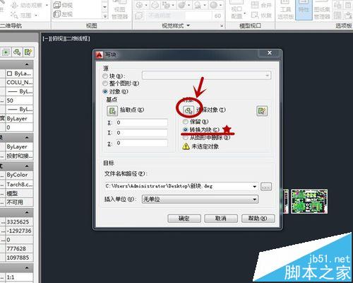 3、因為我們現在是要把原圖紙中的某部分分塊單獨保存出來,所以我們選擇——轉換為塊。然后在點擊圖中被圈出來的部分。