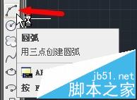 5、選擇繪制圓弧。然后把三個端點連接起來。