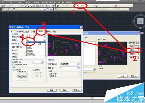 8、點選上方的標注樣式設置(或者選菜單欄的【標注】→【標注樣式】)選用自己使用的標注項目,修改,在主單位這一欄,把精度從小數點后1位設置成個位數(0.0→0),點確定,客戶提供的原圖就出來了。