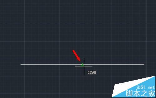 3、畫高750:選畫直線,然后鼠標放到水平直線中間位置,會出現一個三角形的綠色點,這個就是中點,鼠標在它的附近點一下,系統會自動定位到那個中點上。(之前打開的對象捕捉)