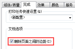 5、在”完成”選項卡中勾選”刪除頁面之間的邊距”