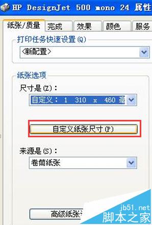 3、點擊自定義紙張尺寸
