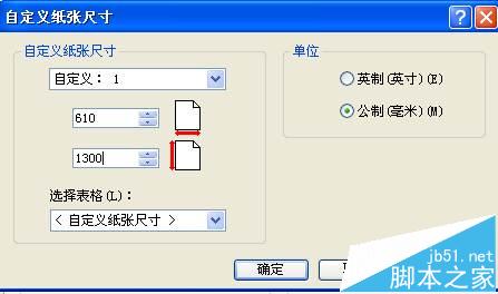 4、自定義紙張尺寸,為確保內(nèi)容可以打印完整,長度可以設(shè)置多一些